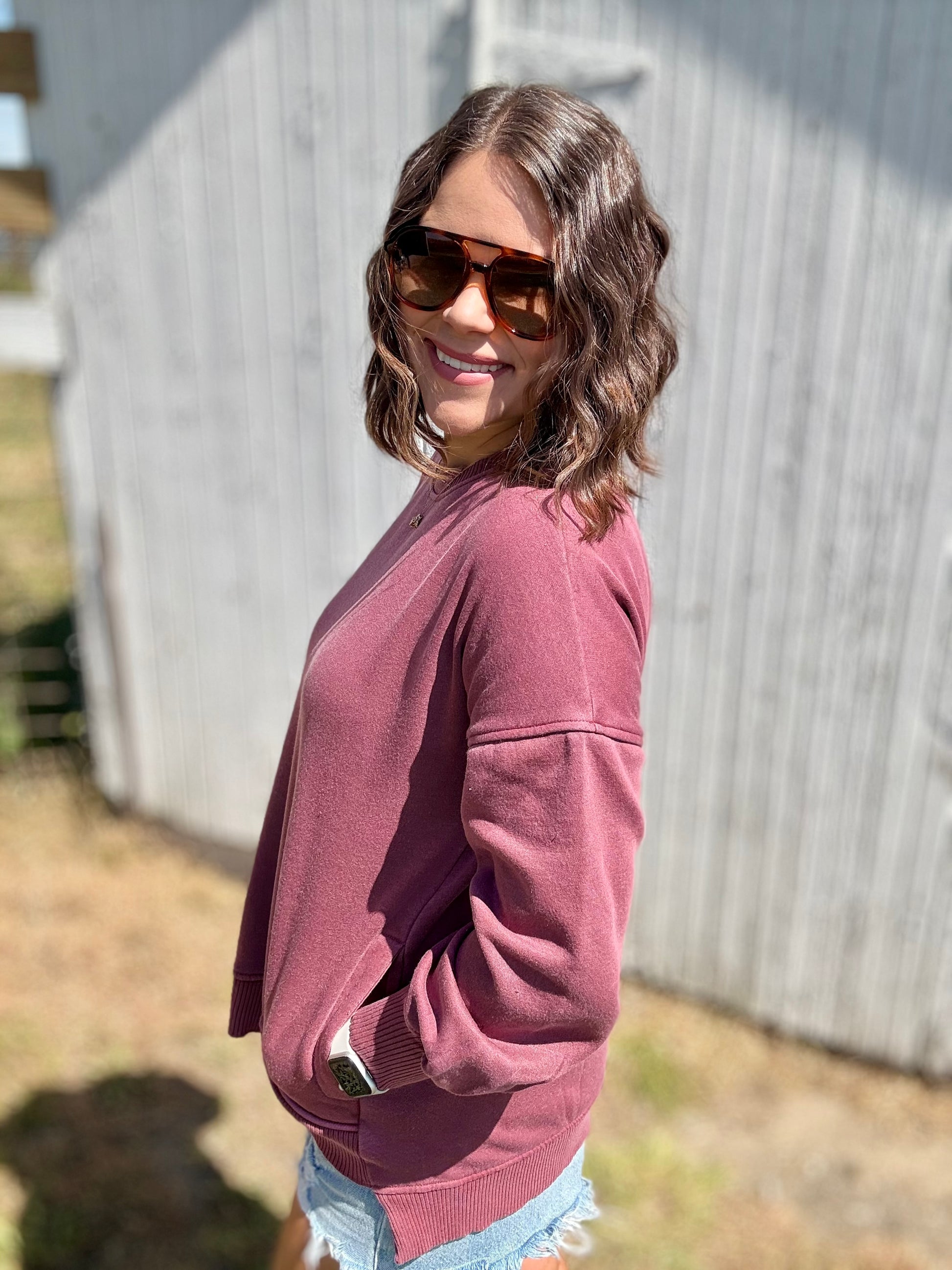 Our crisp morning pullover is the most beautiful color! It's fleece lined to keep you warm yet it is still lightweight at the same time. It has pockets adding a fun feature to an already piece with so much vibe. A truly beautiful blend of perfection! True to size. Make this yours today!